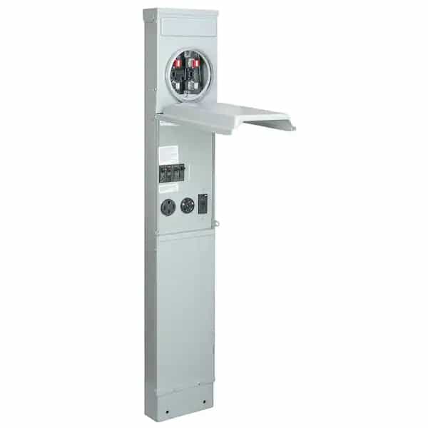 This pad mount metered RV pedestal is lockable and engineered for maximum protection of receptacles, cords, plugs, breakers. It comes to the construction job site ready to install with no need to assemble individual parts, saving installation time. The dual, heavy-gauge NEMA 3R rainproof enclosures protect against weather, vandalism and nuisance tripping. The unit complies with National Electrical Code and OSHA requirements.