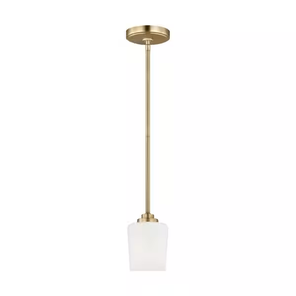 Generation Lighting 6102801-848 Windom 1-Light Satin Brass Mini Island Hanging Pendant Light with Alabaster Glass Shade