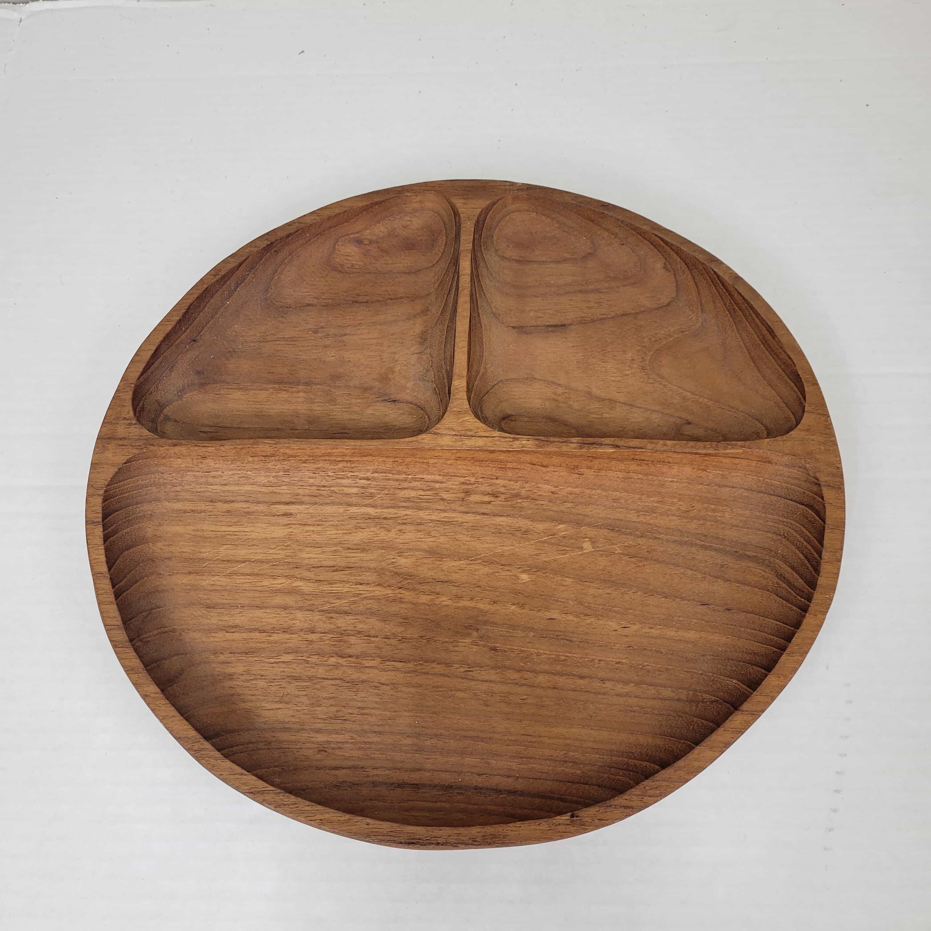 Keywords: teak wood, serving tray, divided plate, appetizer dish, vintage, retro, Thailand, wood tray, condiment server, home decor, kitchenware