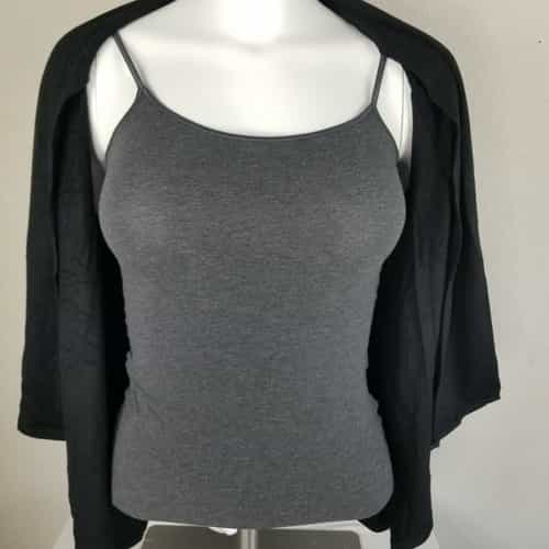 Simple gray sleeveless tank paired with a basic black open front long sleeve cardigan! Wear them together or mix and match them with other pieces in your closet!