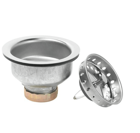 - Package contains strainer body, rubber washer, fiber washer, mounting cup, lock nut, tailpiece washer, slip nut, and strainer basket