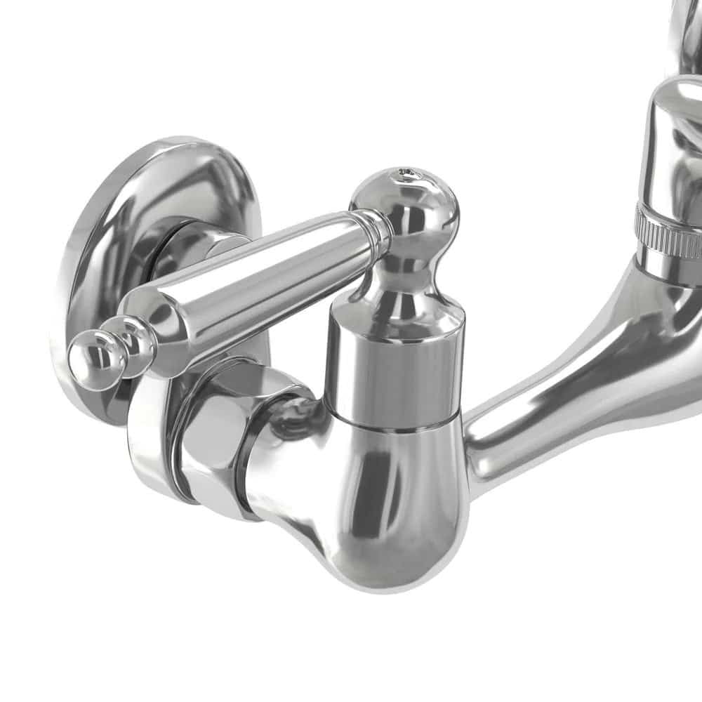 The Glacier Bay 2-Handle Kitchen Faucet in Chrome features a unique wall-mount design that enables you to install it regardless of your sink’s existing fixture holes. Its design also saves you counter space, while its long handles allow for easy use. This faucet is equipped with an elegant high arc spout and 7-9 in. adjustable center distance for versatile installation and hookup.