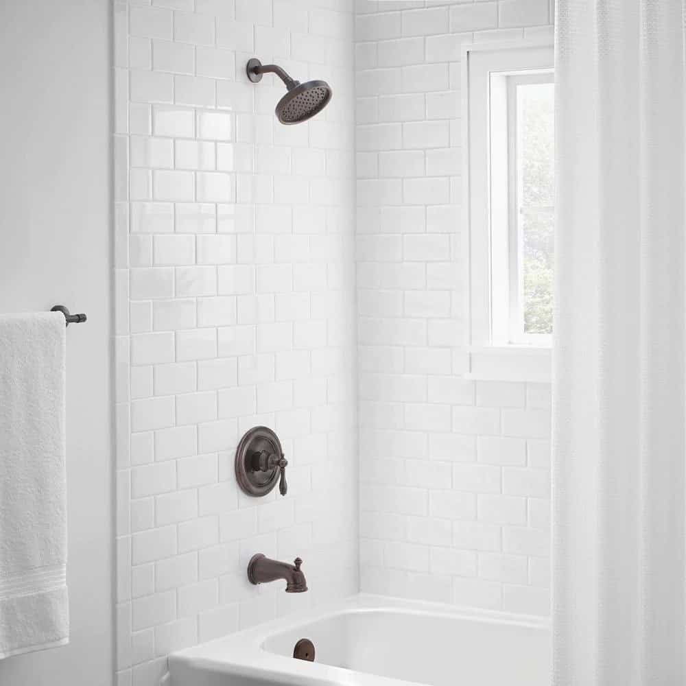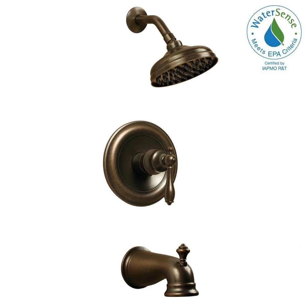 The elegant design of the Estates Single-Handle 1-Spray Tub and Shower Faucet in Heritage Bronze works with many bathroom decors. Each component of this tub and shower set is sculpted to highlight its beauty. Turn your home into an Estate with this decorative and high-quality single handle tub and shower set. Finished with a durable heritage bronze finish, this faucet is easy to use and maintains a constant temperature for safe and comfortable showering. Built-to-last with a solid brass valve body to ensure a long life. WaterSense certified with a 1.8 GPM flow rate and washerless valve for drip-free performance. Pair with other pieces in the Estates Collection for a beautiful cohesive look.