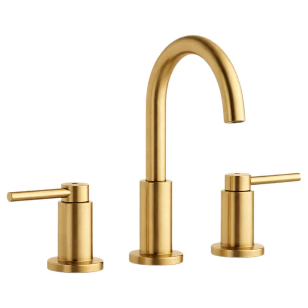 The Dorind 8 in. Widespread 2-Handle High-Arc Bathroom Faucet in Brushed Gold from Glacier Bay features a sleek, contemporary design that complements a wide range of decor styles. WaterSense certified, it delivers a 1.2 GPM flow rate to help conserve water, while ceramic cartridges ensure drip-free performance. The dual-handle design and high-arc spout offer easy operation and comfortable sink access. A matching push-down pop-up drain assembly is included.