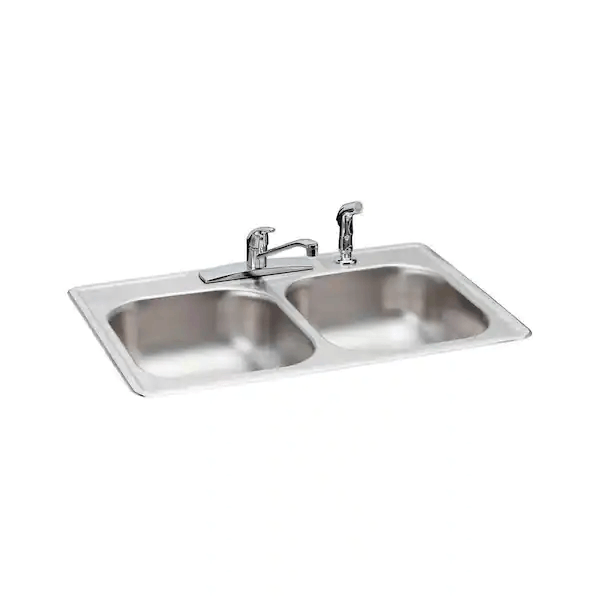 Glacier Bay HDDB332274LFR All in One 33 in Drop in Double Bowl 22 Gauge Stainless Steel Kitchen Sink with 4 Holes and Faucet Side Sprayer