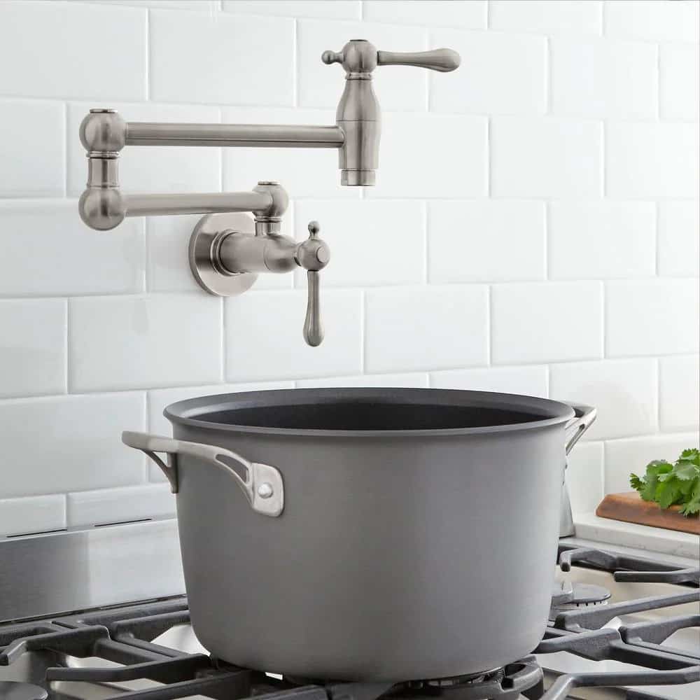 This Glacier Bay Lyndhurst Wall-Mounted Pot Filler is a great addition to any new home or renovation. With durable finish, this pot filler is easy to clean and has a ceramic disk cartridge to ensure drip-free usage. It also features a limited lifetime warranty to ensure years of trouble free usage.