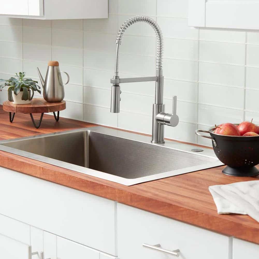 Glacier Bay Statham 1003 341 113 Single-Handle Coil Spring Neck Kitchen Faucet with TurboSpray and FastMount in Stainless Steel