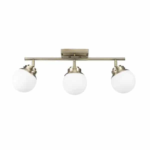 Add farmhouse elegance to your home with the Mabel 3-Light Track Bar. The classic globe shades are accented with an antique brass finish and frosted glass to bring instant glamour to your space. Ideal for any room in your home, each track head pivots to direct light where you need it most. The pivoting track heads allow you to point the light wherever you need it most while keeping a stunning facade. The antique brass finish is complementary to a variety of design styles to easily integrate into your existing decor.