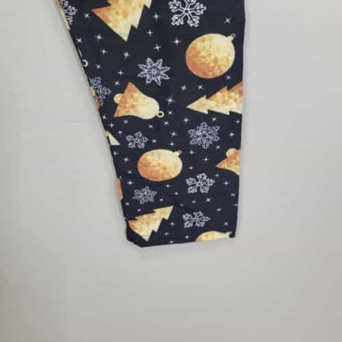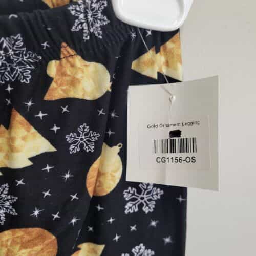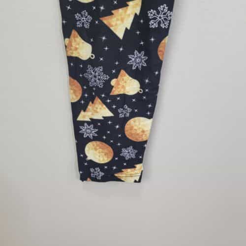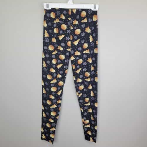 Soft and comfy pair of black leggings made of polyester and spandex with a beautiful gold ornament print!