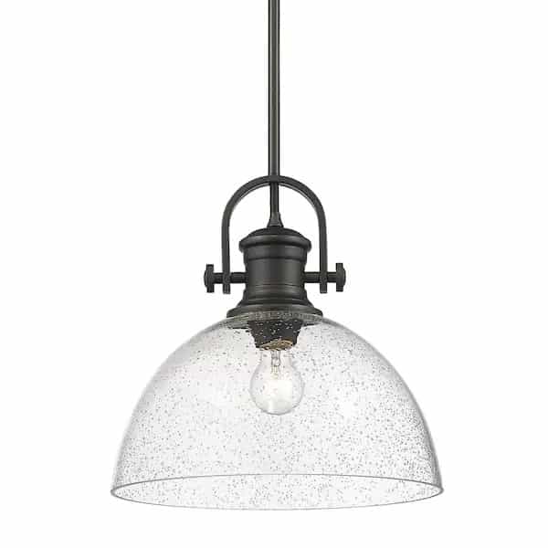 Golden Lighting 3118-L RBZ-SD Hines 1-Light Rubbed Bronze with Seeded Glass Pendant