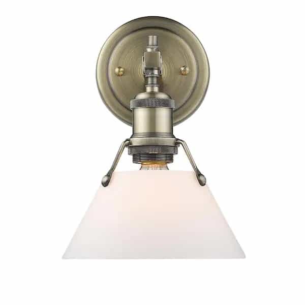 Golden Lighting 3306-BA1 AB-OP Orwell AB 1-Light Aged Brass Bath Light with Opal Glass Shade