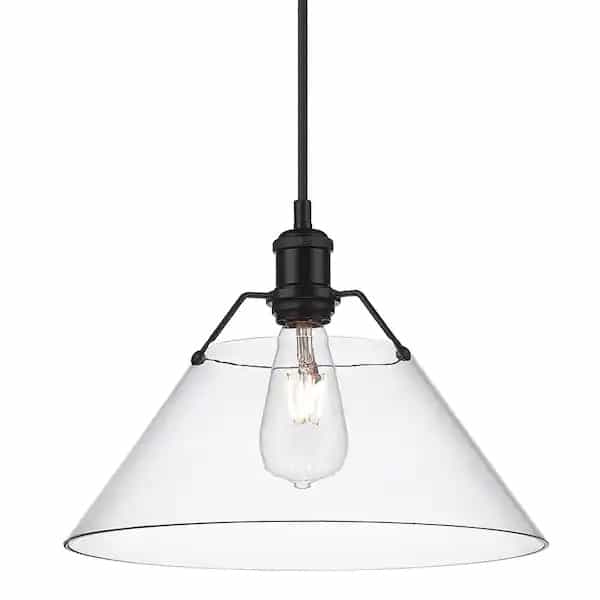 Golden Lighting 3306-L BLK-CLR Orwell 1- Light Matte Black Clear Glass Crystal Large Pendant Light