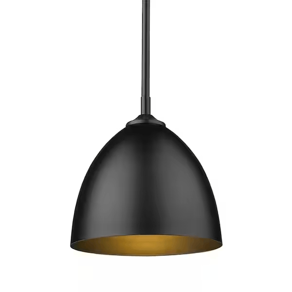 Golden Lightings Zoey Collection is proof that simple can be beautiful. This elegantly utilitarian series has the chic versatility to enhance the style of a variety of spaces. The smooth lines of this minimalist design pair well with transitional to modern decors. The cleanness of the contemporary look gives the fixtures a slightly industrial feel. Zoey is offered in two sizes with three smooth finish options; Matte Black, Olympic Gold, and Pewter. The shades are available in three matte finishes; Matte Black, Matte Gray, and Matte White. The color of the shades interior consistently matches the shades exterior finish. The silhouette of the metal shade is a modern update to the classic dome shape. This small pendant can be hung alone or arrayed in a group.