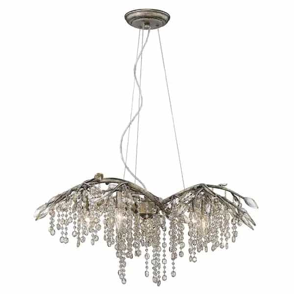 Like dewdrops under a forest canopy, Golden Lighting’s Autumn Twilight collection displays glistening glass beads that cascade from organic leaves and branches. This nod to nature gets a modern twist with a Mystic Gold finish making it a natural in contemporary settings.G4 halogen bulbs provide an inner source of illumination that causes the light to sparkle and reflect playfully off the countless gleaming surfaces sparking both curiosity and conversation.This 6 light chandelier creates a stylish focal point perfect forintimate living and dining areas.