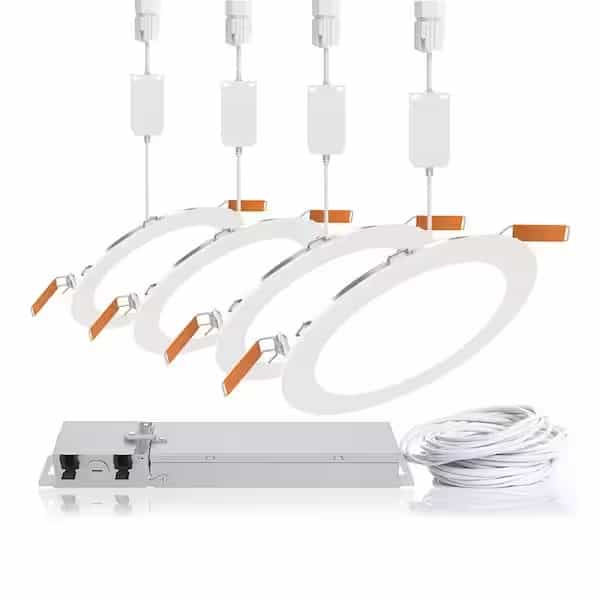 Light any room faster and smarter with QuickLink low-voltage smart lighting. The first lighting system to combine smart lighting technology with a single low-voltage power supply that can power up to 6 HLB6 downlights. QuickLink provides fast, hassle-free downlighting installation with canless fixtures that connect to the low voltage cable with just a twist. This kit includes 4 smart fixtures, the driver and 35 ft. of low voltage cable. Add individual lights to the cable as needed (sold separately). Canless fixtures mount directly to the ceiling with spring clips so no housing is required and are rated for almost any application. Use the HALO HOME app to adjust the light from warm white to cool daylight (2700K-5000K) along with wireless ON/OFF and dimming to 5%. You can also Group lights, set the mood with Scenes or add Schedules for easy home automation.