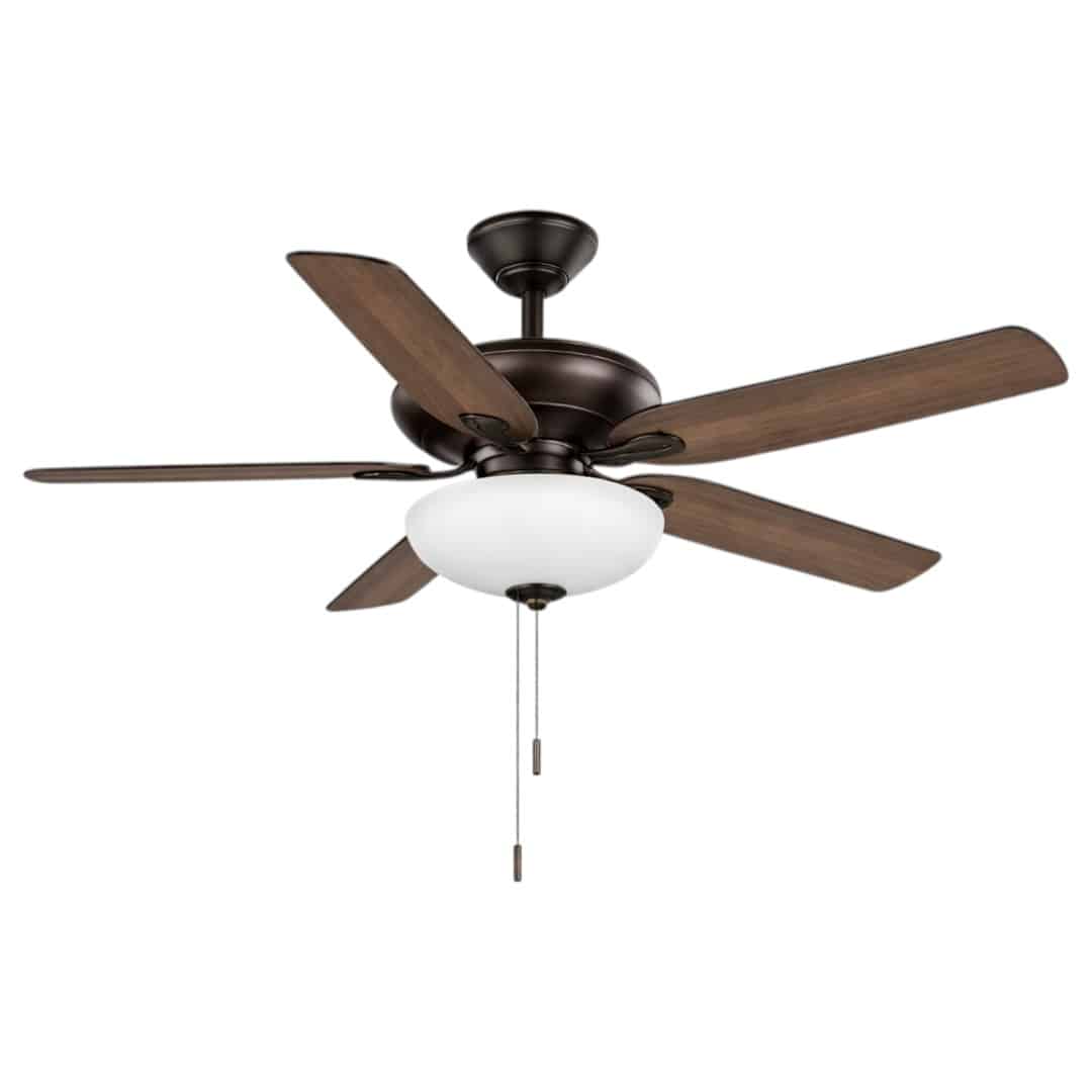 The 52 in. ceiling fan is designed to deliver strong airflow while blending easily with a wide range of indoor décor styles. It features installation-friendly components such as a slide-on mounting bracket, quick-install blades, and specially designed blade arms to help simplify setup. The light kit includes 3 LED bulbs that use less energy and offer longer life than traditional CFL or incandescent bulbs. This fan can be installed either with or without the light kit for added flexibility.