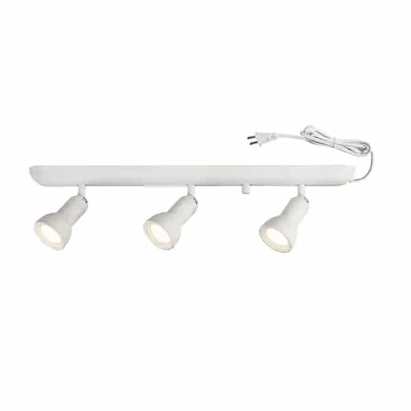 This Hampton Bay Integrated LED Multi-Directional Light fixture comes with everything you need to get up and running. It provides an abundance of light and sophistication to your interior space. It features multi-directional lamp heads to provide light to difficult places where light does not reach. Use in workshops, dorm rooms, utility rooms or any place where and a light source does not exist. Just plug it in and voila, let there be light. Includes a 5 ft. cord and plug and a built in rotary style ON/OFF Dimmer switch.