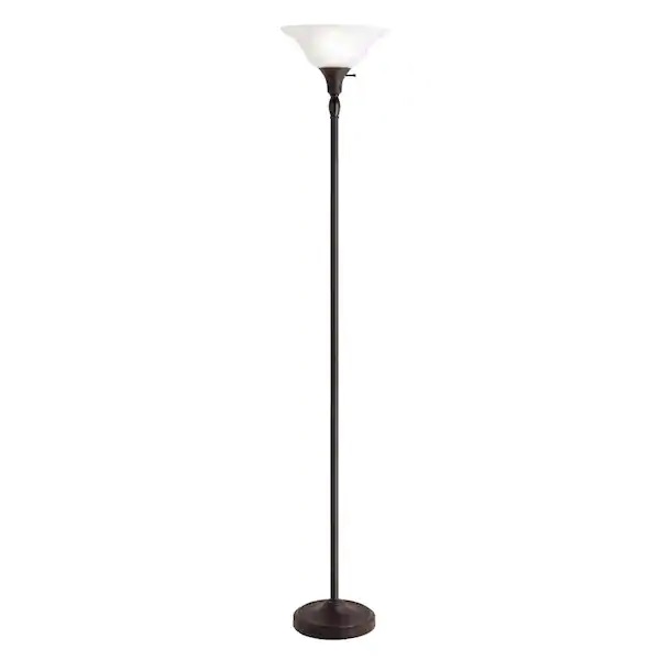 If you are a DIY-er looking for your next project, consider the Torchiere Floor Lamp to update your light fixtures in your project. This lamp features a flared, alabaster glass shade with a rich, bronze finish. It is perfect for use in bedrooms, the family room or your home office. Minimalist design is combined with durability with this piece.