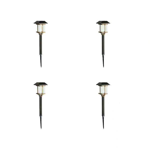 These Solar LED Outdoor Pathway Lights feature an elegant ice glass lens and vintage bulb for a beautiful lighting effect on your walkway. The perfect way to enhance your home’s landscape, adds charm and elegance while increasing safety during the nighttime hours. Solar-powered means you can use them anywhere the sun shines. With no wiring necessary and LED bulbs, these solar path lights are easily installed and practically maintenance free.