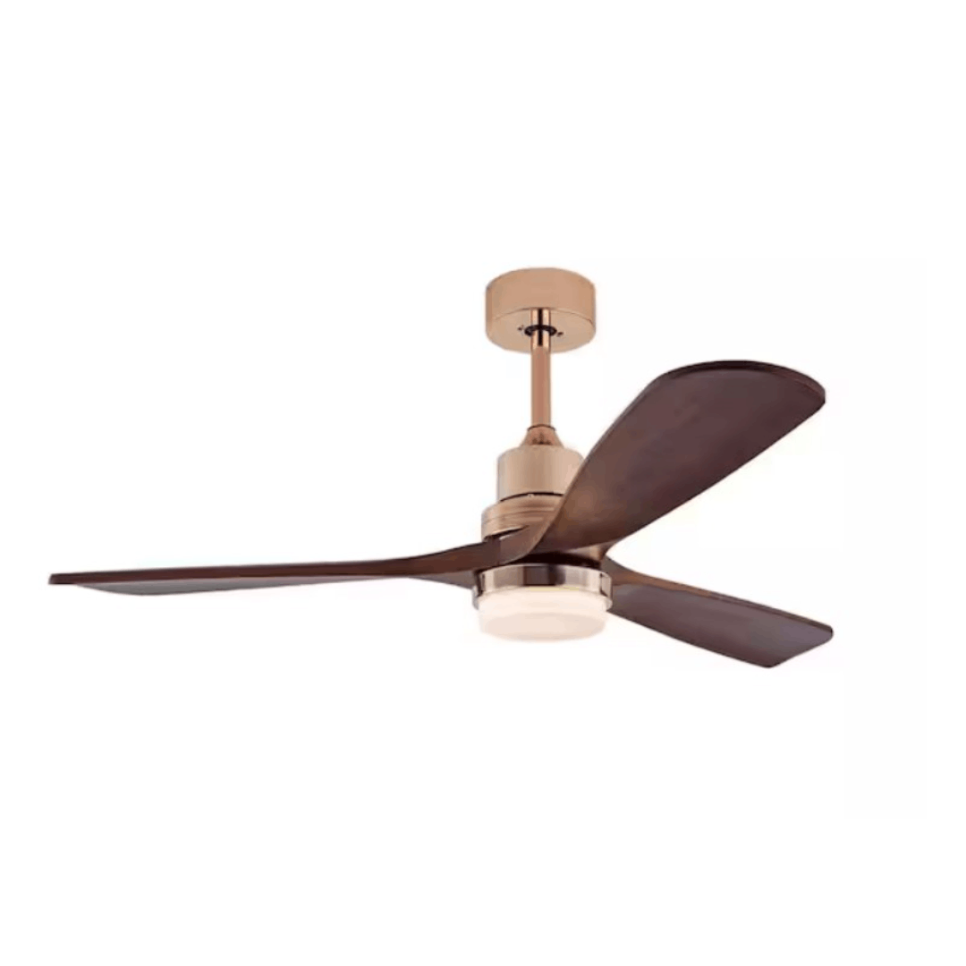 This ceiling fan light blends elegant design with functional performance, offering both illumination and cooling in one fixture. Its stylish gold finish with modern brown blades adds a decorative touch, while the strong yet quiet airflow ensures year-round comfort. Suitable for areas from 53.82 to 161.46 sq. ft., it works beautifully in bedrooms, living rooms, kitchens, dining rooms, offices, and more. The integrated LED light provides adjustable warm, neutral, and cool tones, while the reversible fan function keeps you cool in summer and circulates warm air in winter.