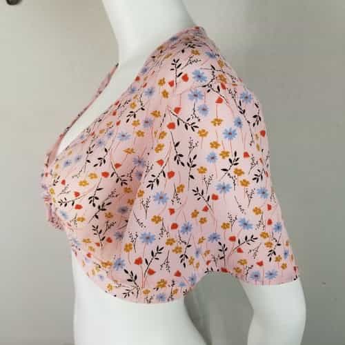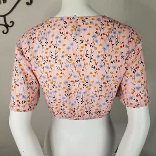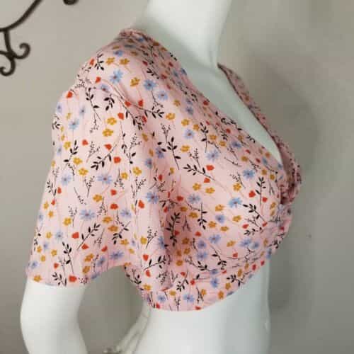 Cute peach colored floral print crop top with a twisted front! Perfect for a summer and spring wardrobe!