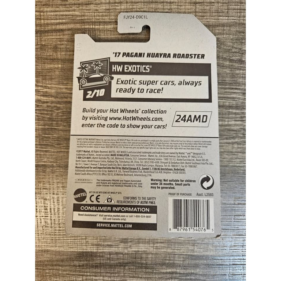 The Hot Wheels ’17 Pagani Huayra Roadster is a 1:64 scale diecast car in red color, part of the Hot Wheels Roadsters series. This unopened box toy, manufactured in 2017 in Malaysia, is suitable for children aged 3 and up. With the iconic Pagani Huayra model, this collectible item appeals to both boys and girls who are fans of cars and toy vehicles. The detailed design and high-quality construction make it a desirable addition to any diecast car collection.