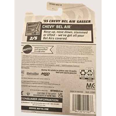 Hot Wheels Chevy Belair “55 Chevyi Bel Air Gasser” 45/250- 2/5; 2021 Mattel; Made in Malaysia — ITEM #3507