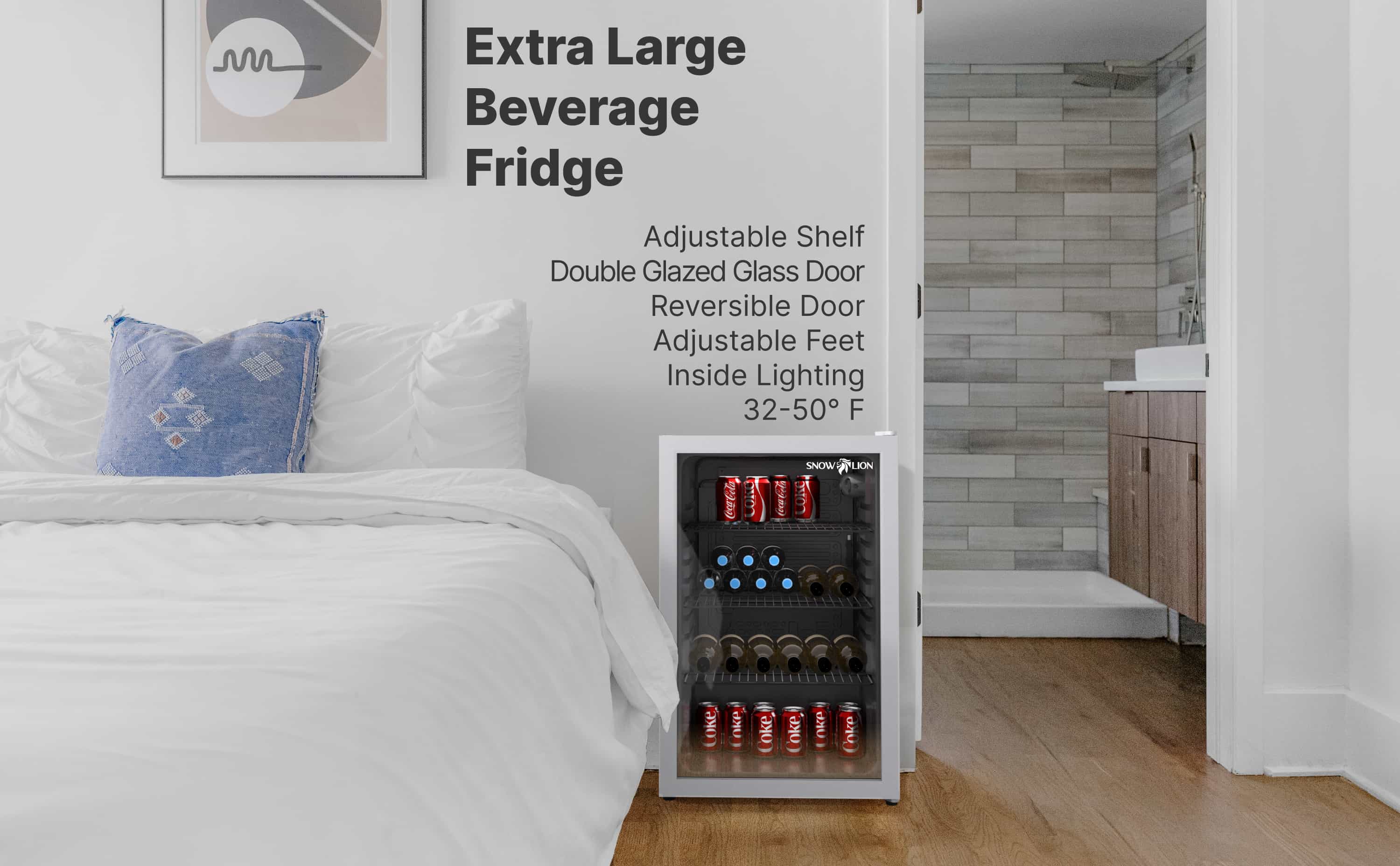 The SnowLion 131L Beverage Refrigerator is perfect for holding your favorite drinks at the perfect temperature. With a capacity of 4.6 cubic feet, 174 cans, and 116 bottles, you’ll always have plenty of space to store your favorite beverages! This fridge offers a temperature range of 32-50 degrees Fahrenheit, and it’s adjustable, so you can ensure that the temperatures remain ideal for whatever type of beverage you are storing. The reversible door allows you to open the door from either side, while the adjustable feet let you find just the right height for your needs. Along with double-glazed glass doors, SnowLion’s refrigerator is equipped with 3 1/2 shelves – one being an adjustable wine bracket – plus an LED bulb inside to light it up nicely. With only 40dB in noise level and an annual energy consumption of 130Kwh, this fridge offers maximum efficiency and convenience for all your beverage storage needs!