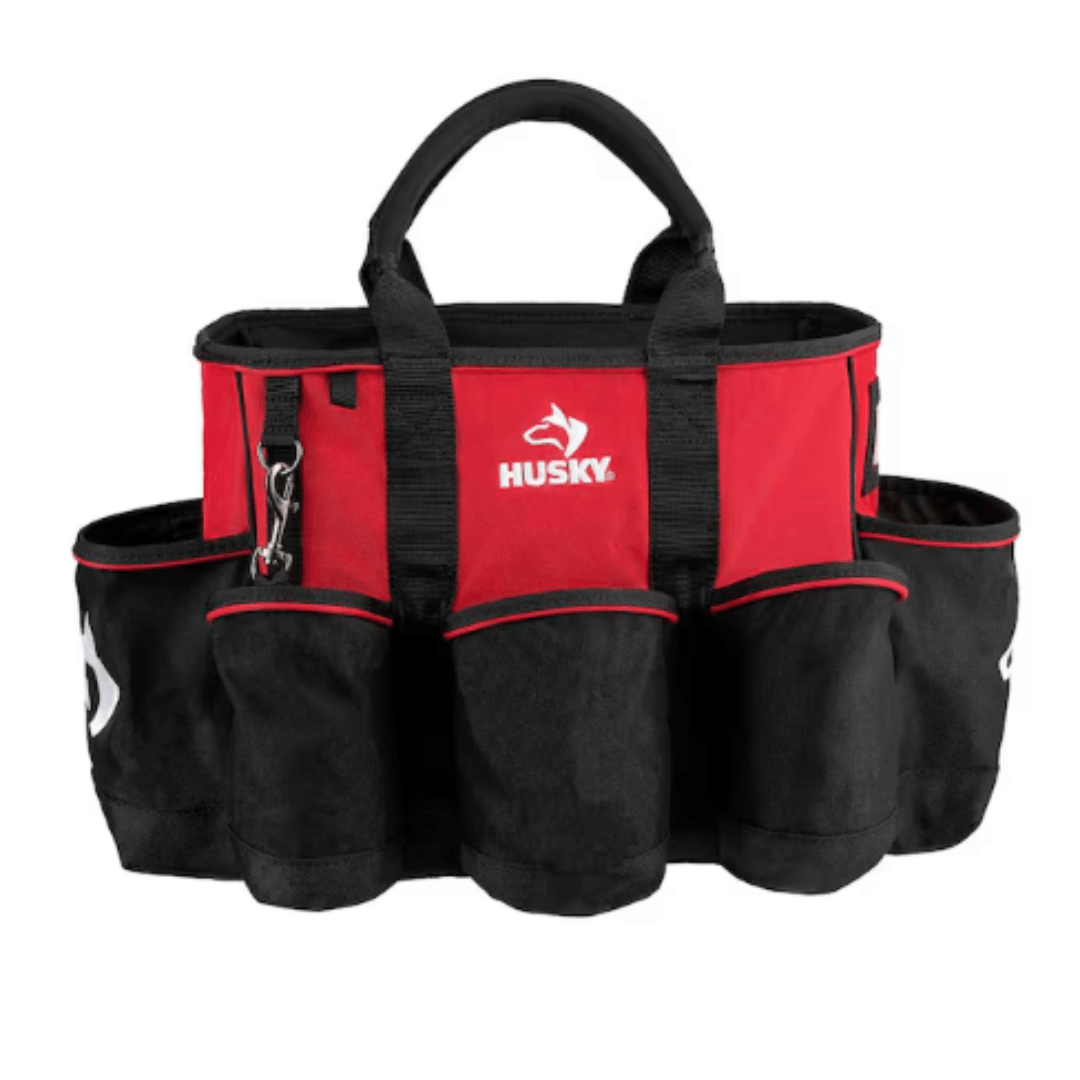 The Husky 14 in. Supply Bag offers 15 spacious pockets, making it perfect for carrying tools, supplies, and accessories. With a 25-pound load capacity, it can be easily carried using the padded handles or placed atop the 18 in. Husky Rolling Tool Tote. Constructed from durable 600 denier water-resistant material, this versatile bag is ideal for organizing and transporting cleaning supplies, tools, and more.