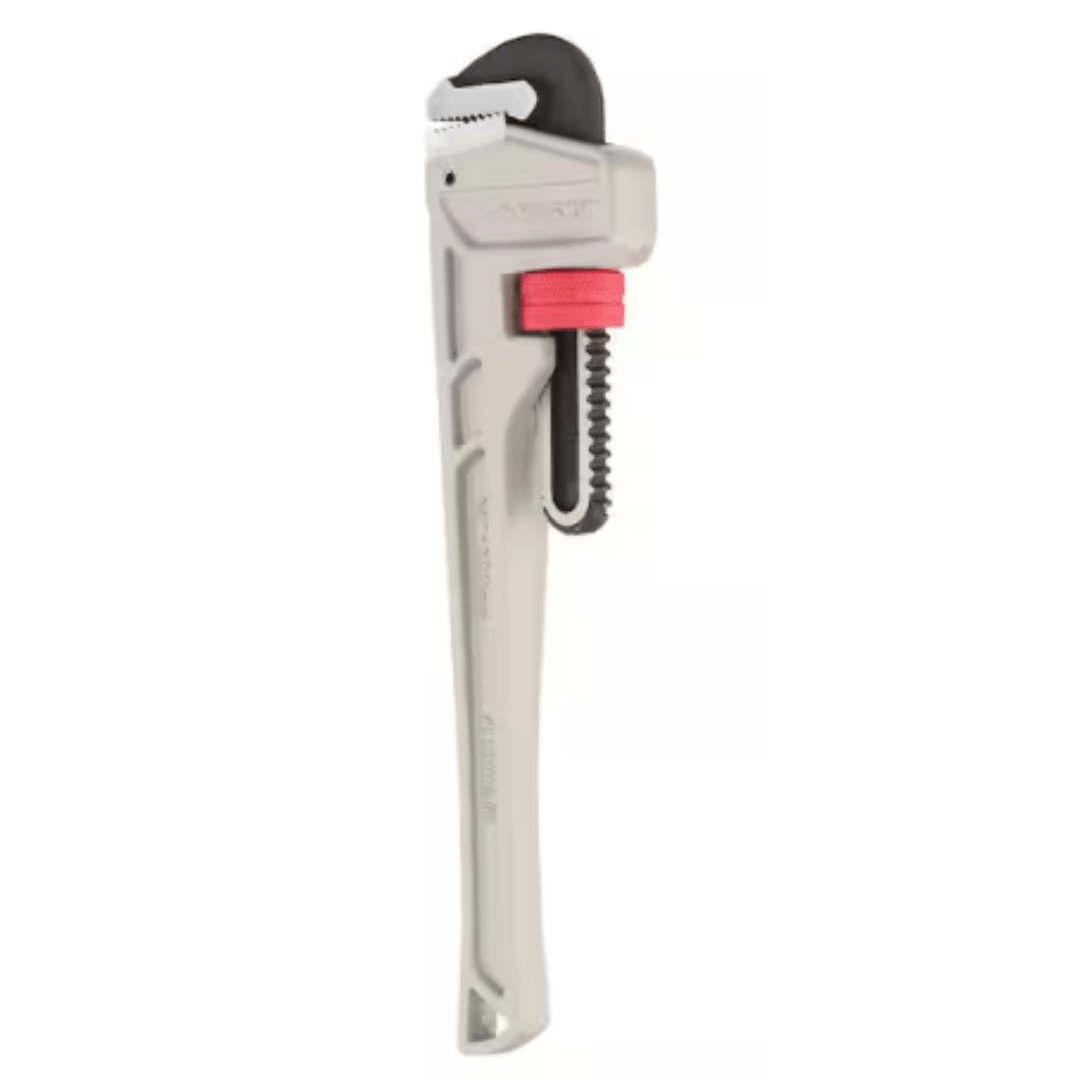 The 14 in. Aluminum Straight Pipe Wrench from Husky combines professional strength with a lightweight aluminum design, making it ideal for gripping and turning threaded pipes. Its trapezoid-shaped jaw ensures a secure grip on pipes of various diameters, while the adjustable high-quality jaw enhances versatility for plumbing repair jobs. The aluminum handle minimizes user fatigue, making it easy to use for extended periods.