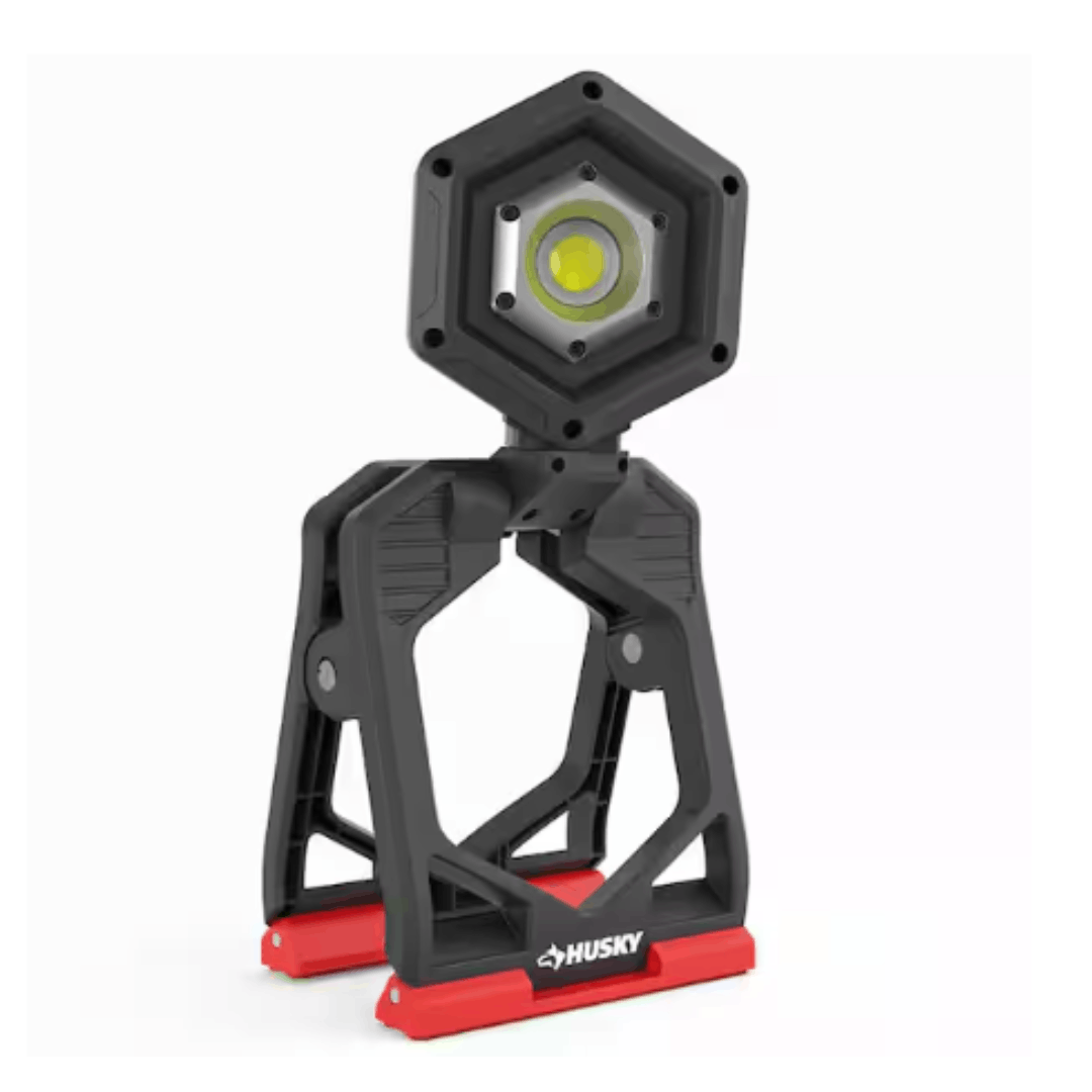 The Husky Clamp Work Light offers versatile lighting with its full 360° pivot, allowing you to direct light exactly where it’s needed. Equipped with a sturdy integrated clamp, it can attach securely to pipes, doors, wood framing, and more, while the non-marring feet prevent scratches and scuffs. Powered by COB technology, this light provides superior brightness and longevity, delivering 1500 Lumens with a USB rechargeable battery. When not clamped, the light’s legs can be locked open to convert it into a free-standing work light. Built from durable aluminum and ABS plastic, it can also be locked closed for easy storage.