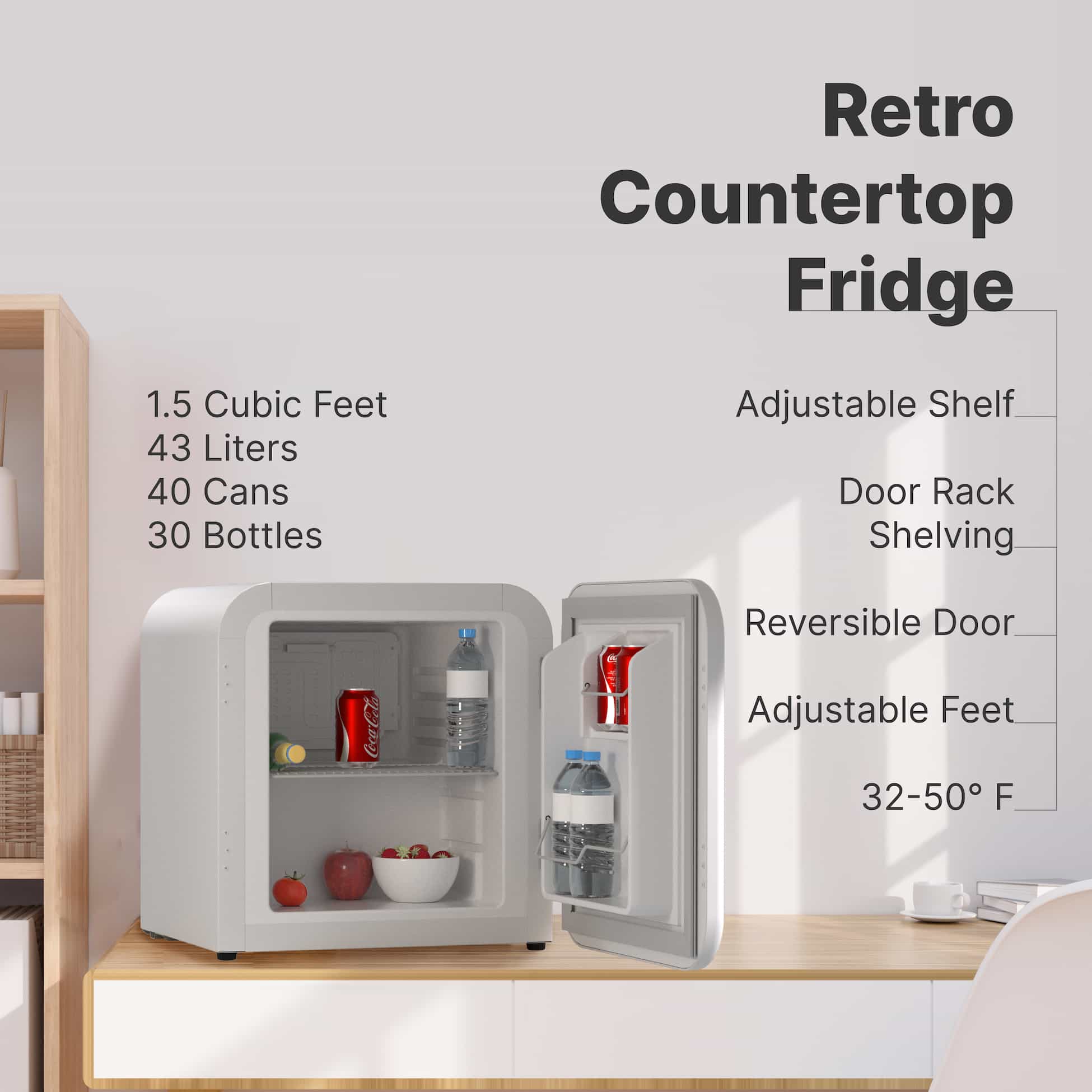 Home & Garden, Major Appliances, Mini Fridges, Refrigerators & FreezersSnowLion 43L Premium Retro Style 1.5 Cu. ft. Freestanding Mini Fridge in White