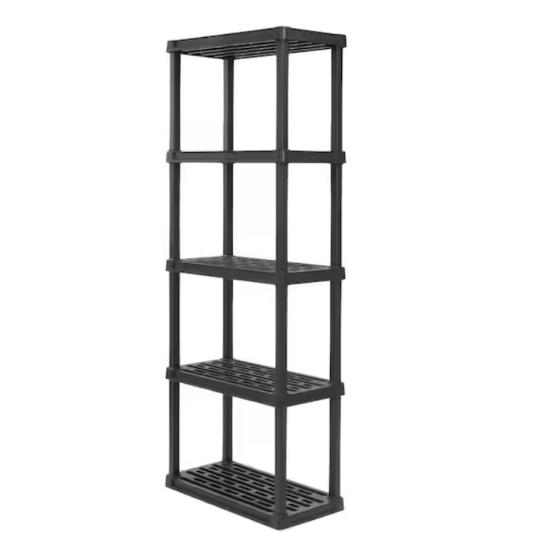 - Strong and durable: Made from sturdy resin material; each shelf supports up to 40 lbs. (200 lbs. total capacity)