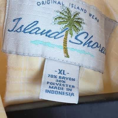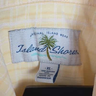 Island Shores Men’s Yellow White Plaid Short Sleeve Button-Up Shirt XL