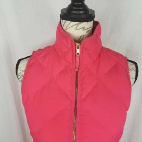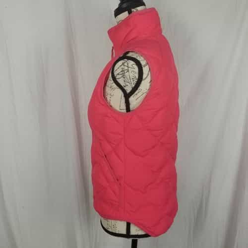 Quilted full zipper front double pocket partial down filled vest in a beautiful salmon color!