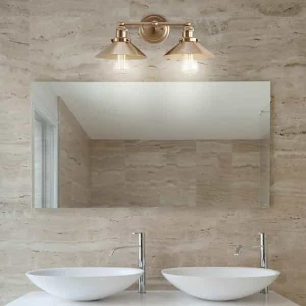 This dynamic design features a metal cone shade that conceals the top half of the bulb perfect for a polished industrial look. In a brushed brass finish, this sconce is perfectly at home above a bathroom mirror or as extra lighting in kitchens, where your hardware truly shines. Also available in other single and multi-light configurations, the geometric shape adds elegant interest to any space.