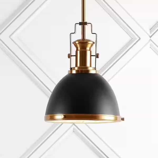 JONATHAN Y JYL9535A Homer 10 in. Black/Brass Gold Iron Glass Adjustable Vintage Classic LED Kitchen Pendant