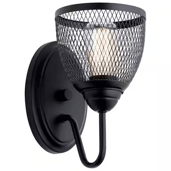 Add a rustic touch to your space with the KICHLER Voclain 10.5 in. 1-Light Black Wall Sconce. It features a metal mesh shade that adds texture and a unique visual appeal to your decor. With its black finish, this wall sconce blends well with a variety of home decor styles, including contemporary, transitional and industrial. This industrial-inspired light is sure to accentuate the decor of your living room, bedroom or more.