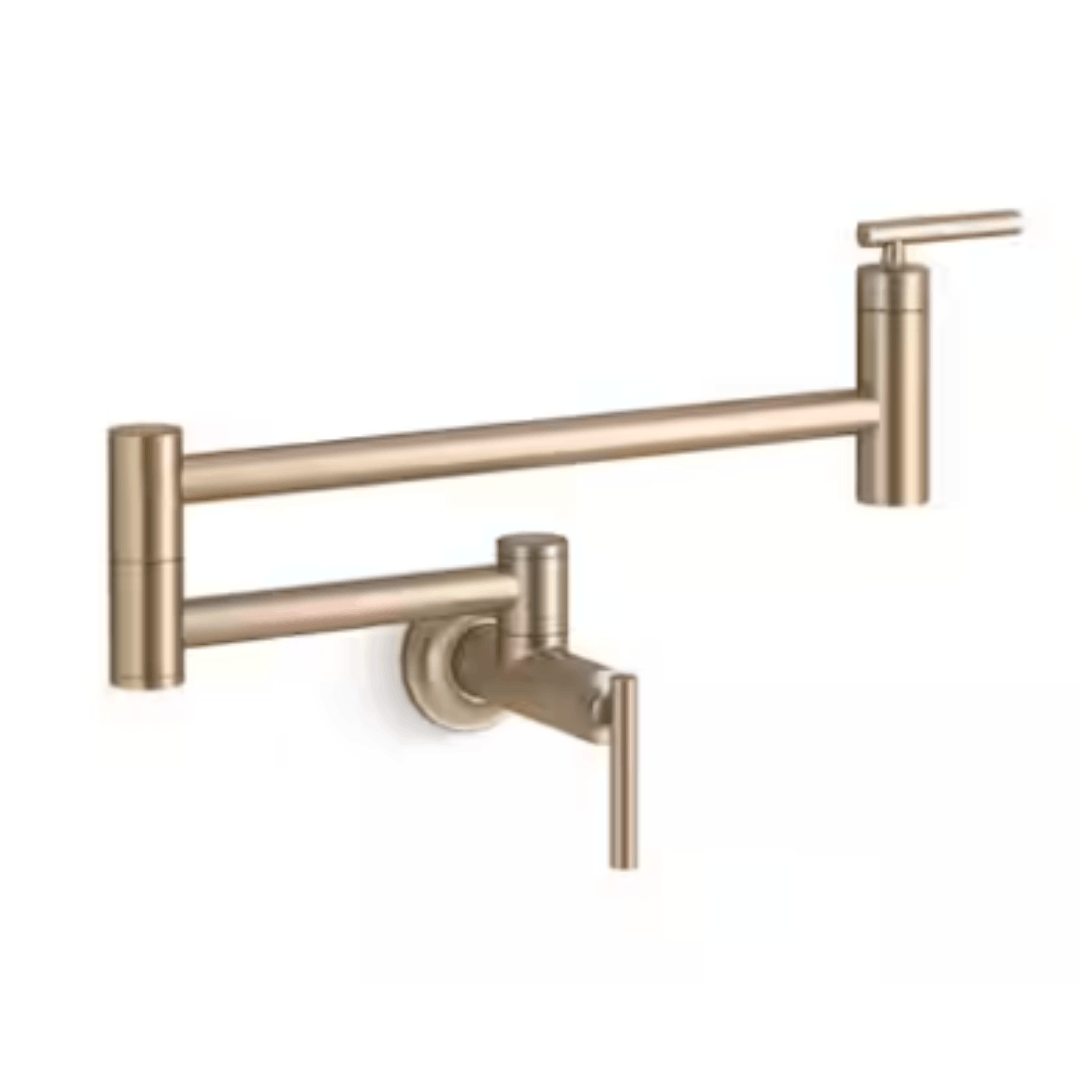 Experience the convenience of a space-saving, wall-mounted faucet that delivers both style and performance. This KOHLER pot filler features a sleek, contemporary design and a 23-1/4 in. articulating spout that folds away when not in use. Designed to swing left or right and deliver water at a powerful 5.2 GPM, it makes filling pots on or near your stove quick and easy—without taking up valuable counter space.