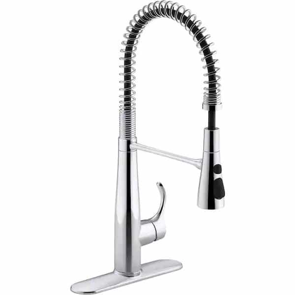 Work like a pro in the kitchen. Inspired by professional kitchens, the Simplice faucet brings elegant design and exceptional ergonomics to home chefs. The pull-down spray head lets you switch between three functions with pushbutton ease: an aerated stream for filling pots and pitchers; Sweep spray for cleaning; and Boost function for increased flow. The high-arching coil spring removes for easy cleaning.