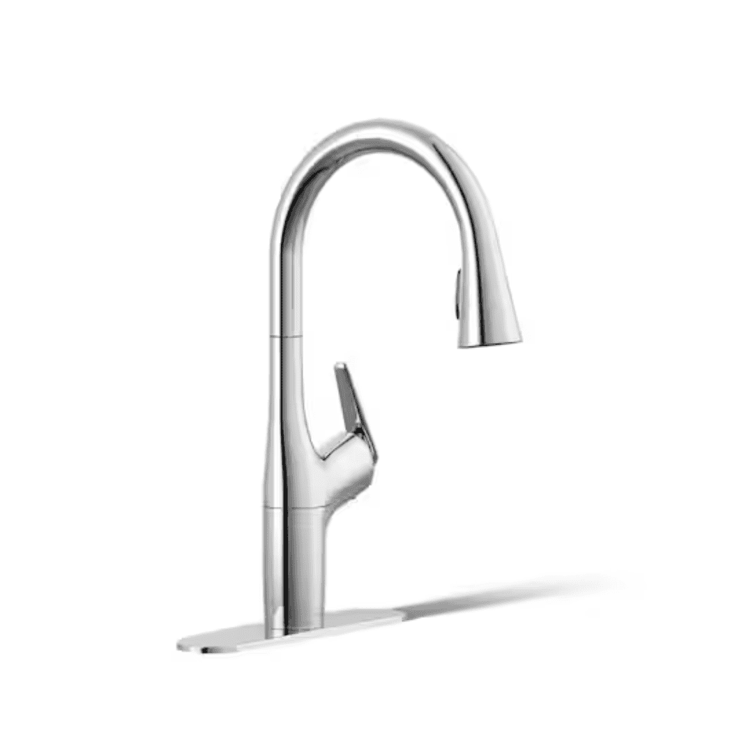 KOHLER K-R24298-CP Safia 1-Handle Pull Down Sprayer Kitchen Faucet with Integrated Soap Dispenser in Polished Chrome