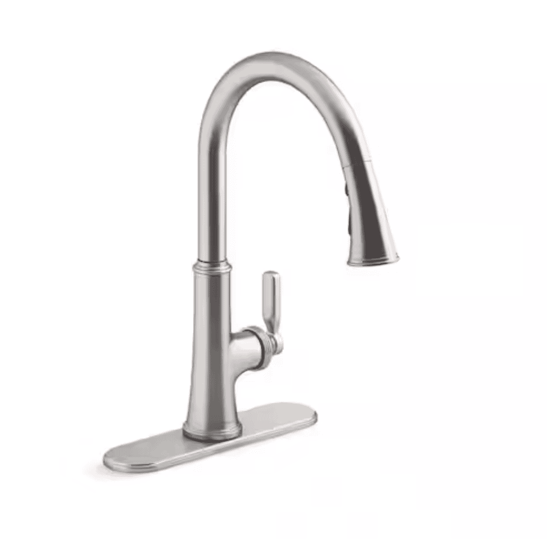 Embrace an heirloom-inspired look with this pull-down kitchen sink faucet that blends classic forms with a simplified silhouette for a fresh, modern style. With a quick touch of a button, boost mode delivers more water for faster filling and a more powerful sweep spray for thorough cleaning. Preassembled supply hoses and quick-connect fittings help make installation easier.