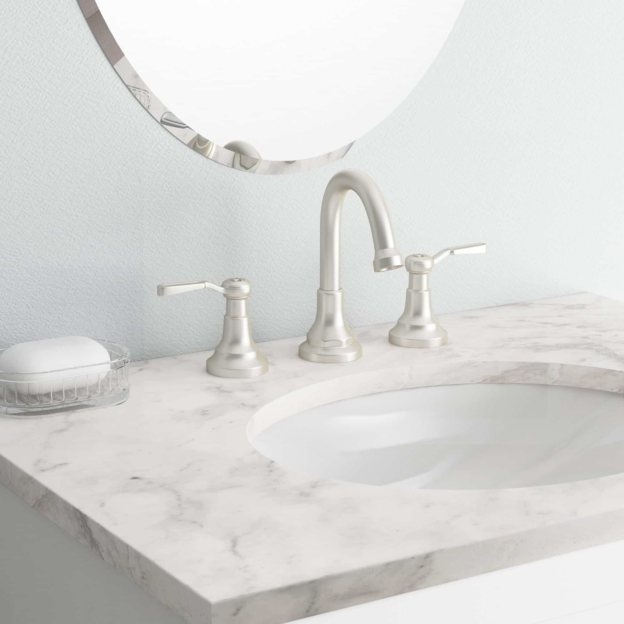 - Two-handle widespread faucet for 8″ – 16″ centers.