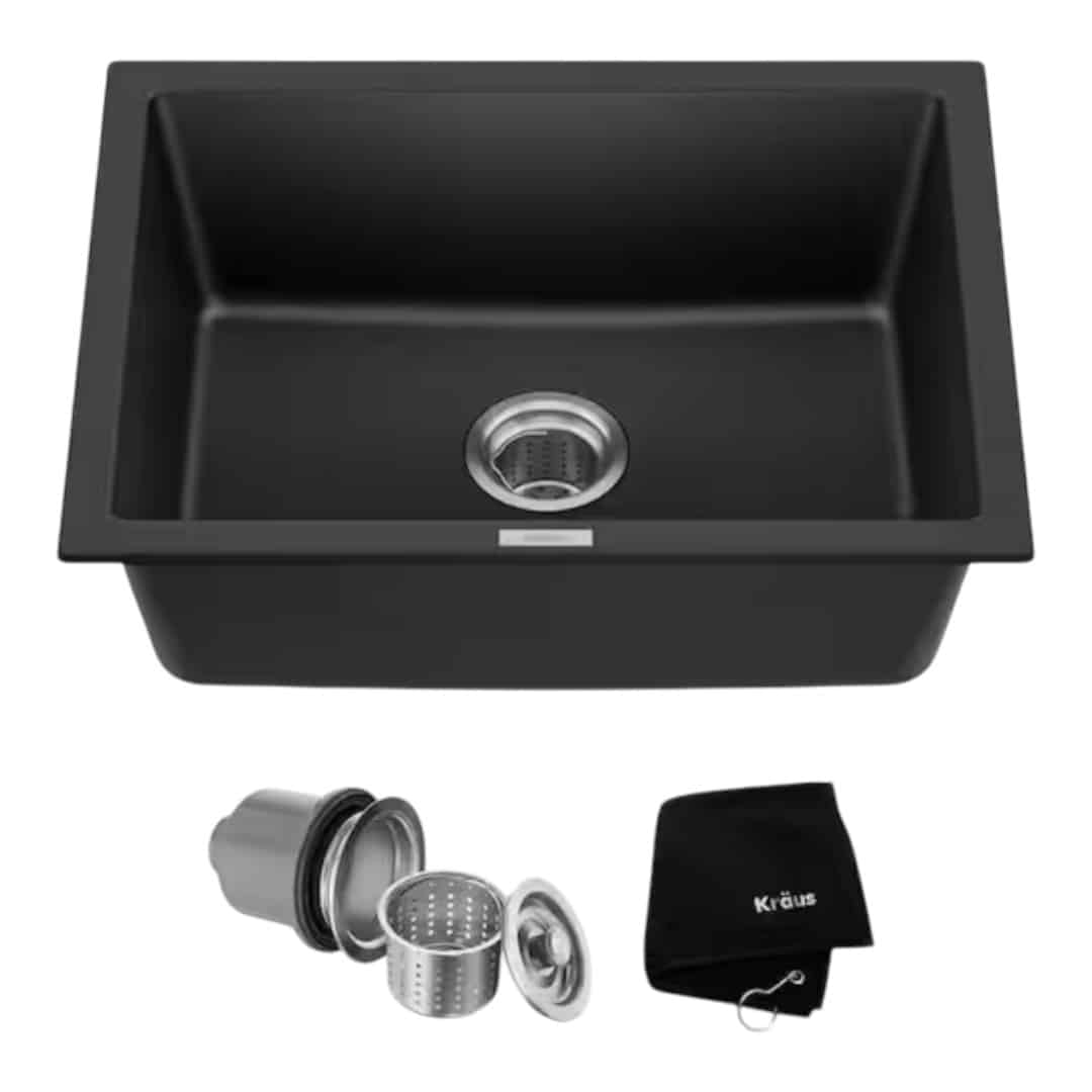 KRAUS KGD-410B Drop-in/Undermount Granite Composite 24 in. Single Bowl Kitchen Sink Kit in Black