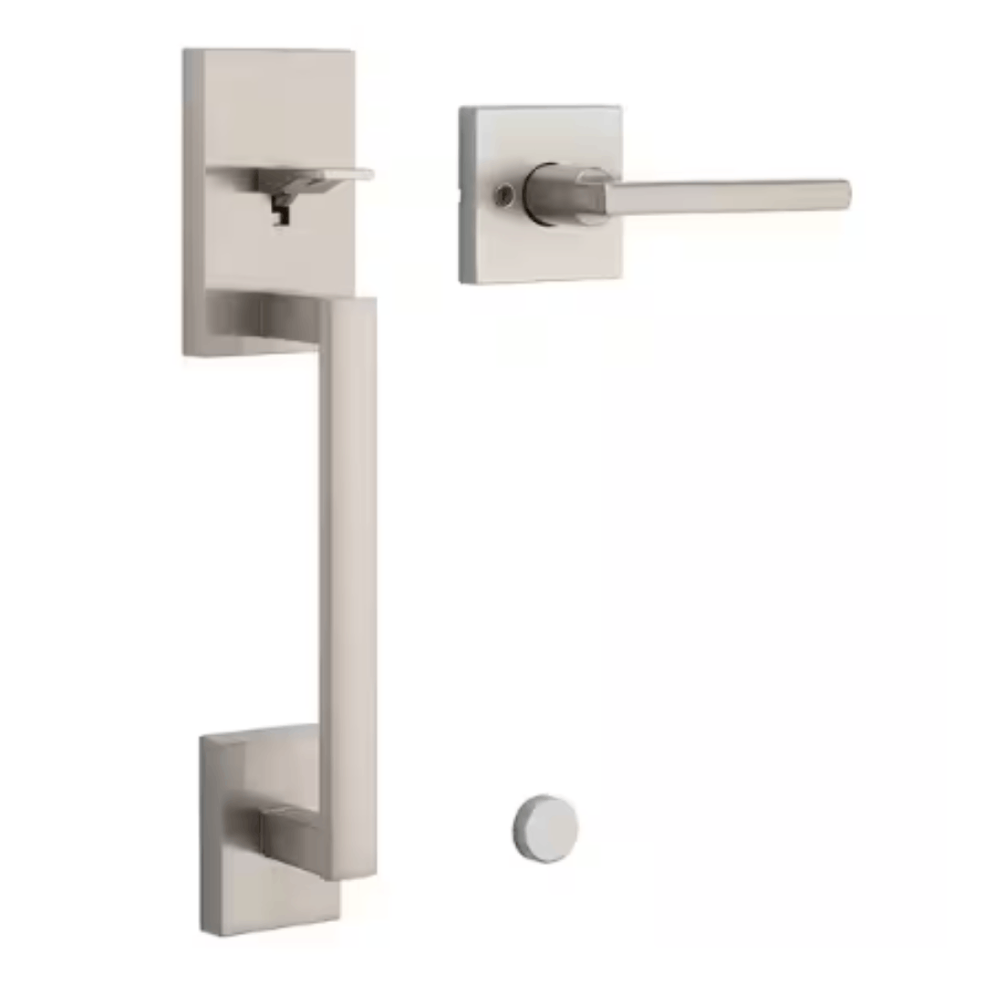 Upgrade your entryway with the stylish and secure Kwikset San Clemente Handleset from the Signature Series. Featuring a sleek, modern design with clean lines, this handleset enhances the look of any home. The Satin Nickel finish adds a contemporary touch, while the adjustable screw ensures easy door mounting and a perfect fit. Ideal for homeowners seeking both elegance and functionality, the San Clemente handleset is a seamless addition to any door.