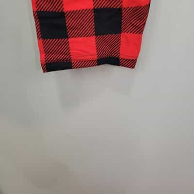 Soft and comfy pair of red plaid leggings made of polyester and spandex!
