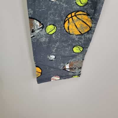 Soft and comfy pair of sports themed faux distressed leggings made of polyester and spandex!