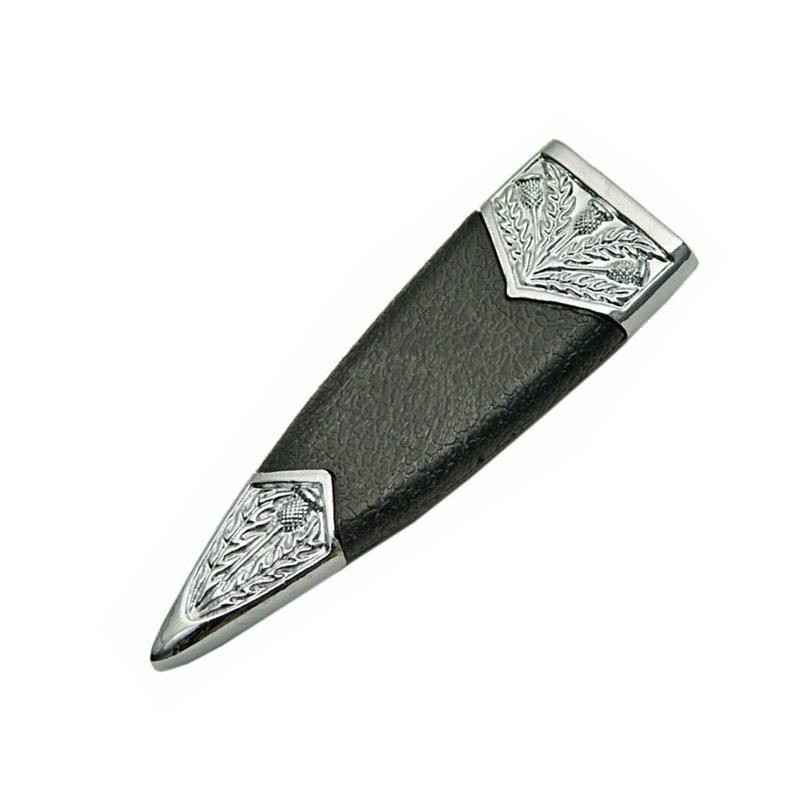 and pommel and are decorated with thistles. The black nylon fiber grip