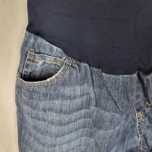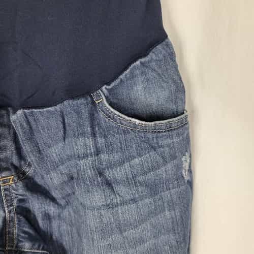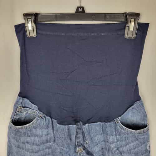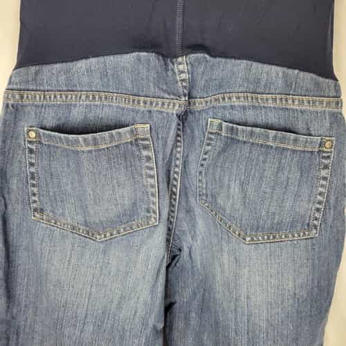Classic blue denim cotton capris with a belly band to allow plenty of room for baby to grow!