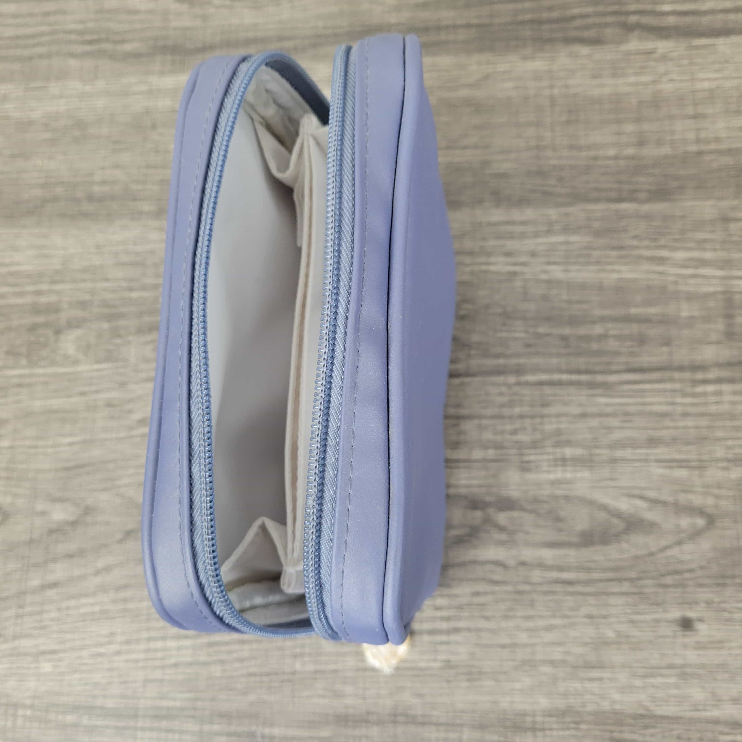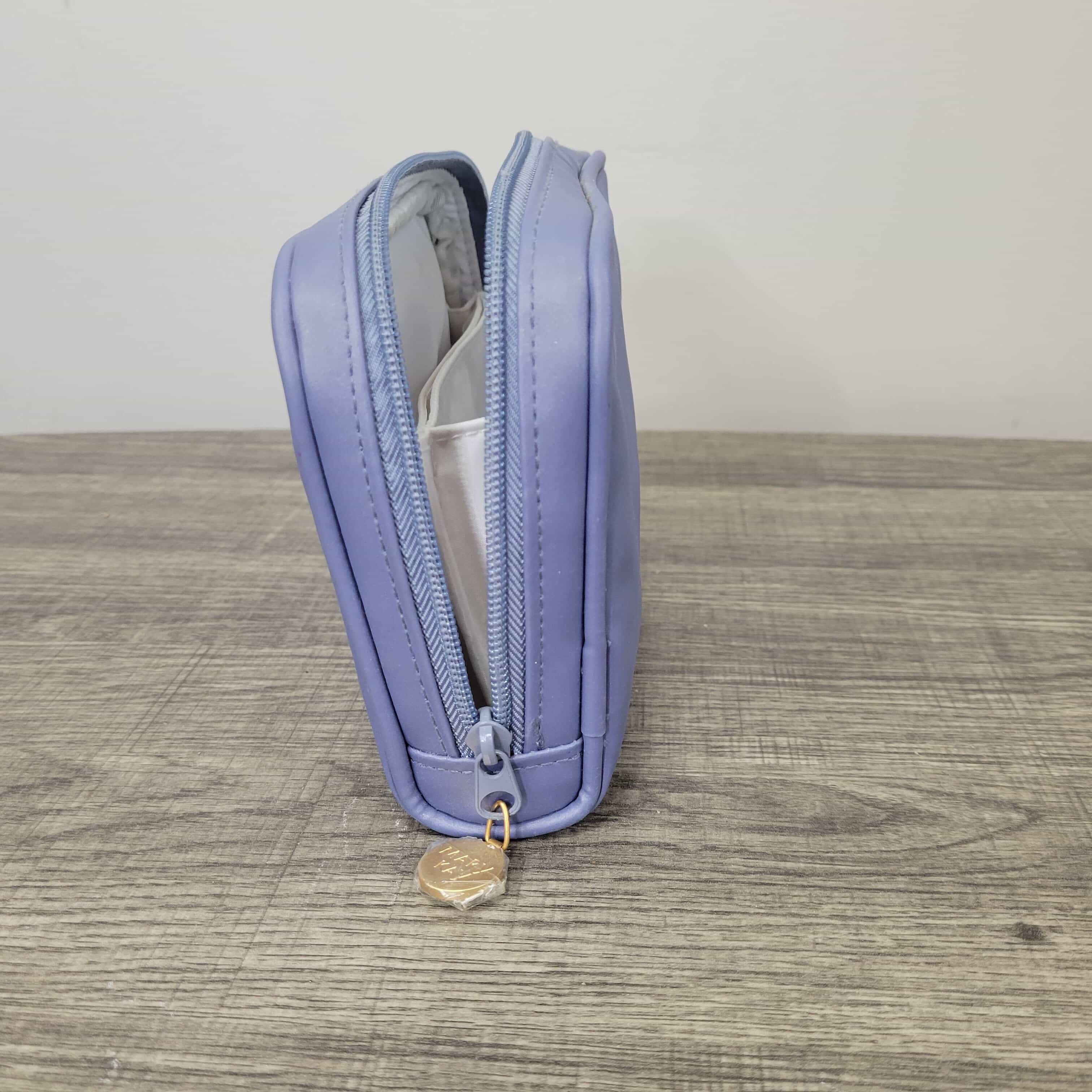 Keywords: makeup bag, cosmetic bag, travel bag, toiletry bag, organizer, pouch, periwinkle, purple, small bag, makeup case, travel case, zipper pouch